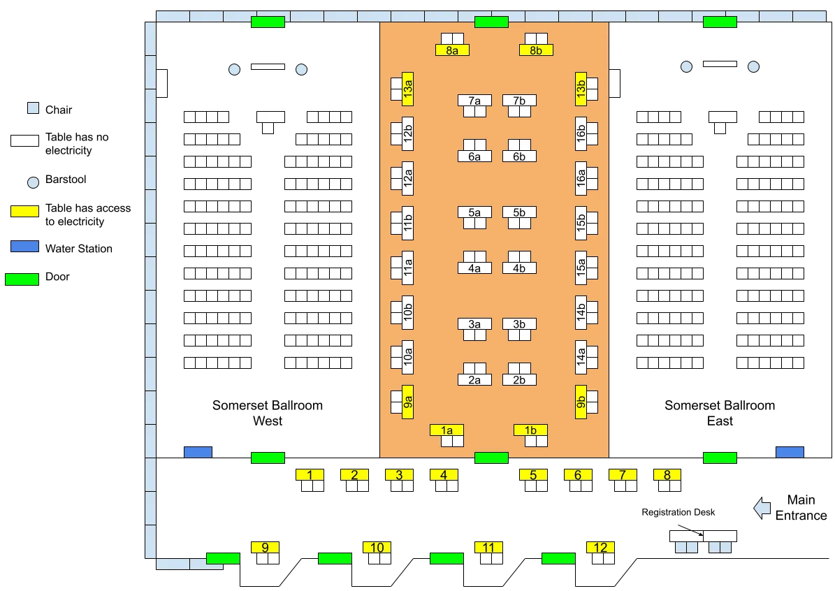 If you need access to an electrical outlet, please let us know after signing up. Also, please pay for a table that is against the wall (these are the only locations with power access).
